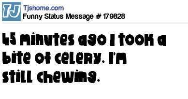 X says 45 minutes ago I took a bite of celery. I'm still chewing.