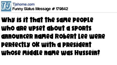 X says Why is it that the same people who are upset about a sports announcer named Robert Lee were perfectly OK with a president whose middle name was Hussein?
