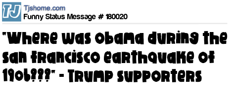 X says "Where was obama during the san francisco earthquake of 1906???" - Trump supporters