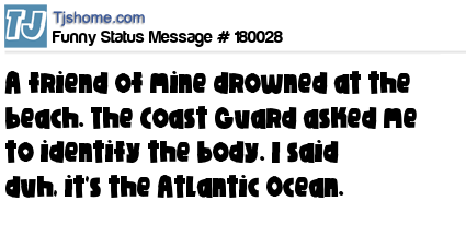 X says A friend of mine drowned at the beach. The Coast Guard asked me to identify the body. I said duh, it's the Atlantic Ocean.