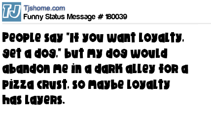 X says People say "If you want loyalty, get a dog," but my dog would abandon me in a dark alley for a pizza crust, so maybe loyalty has layers.