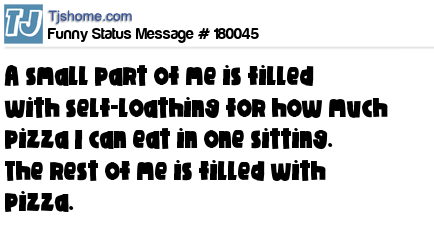 X says A small part of me is filled with self-loathing for how much pizza I can eat in one sitting. The rest of me is filled with pizza.