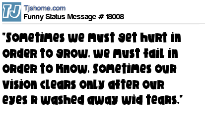 X says "Sometimes we must get hurt in order to grow, we must fail in order to know, Sometimes our vision clears only after our eyes r washed away wid tears."