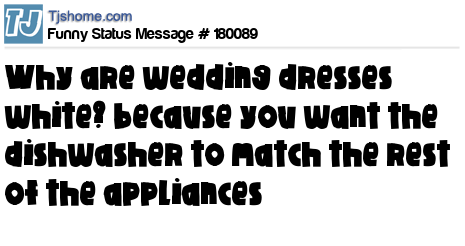 - # 39106 today, when I asked my dad why wedding dresses are white, he replied; "son, all household appliances come in white".