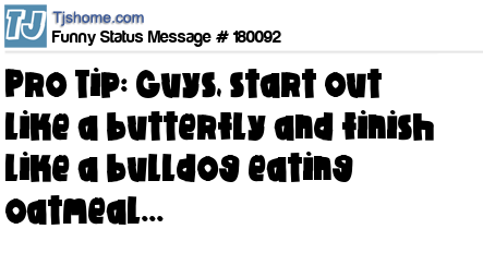 X  Pro Tip: Guys, start out like a butterfly and finish like a bulldog eating oatmeal...