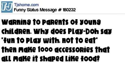 - # 152882 Why does Play-Doh say "fun to play with, not to eat" then make 1000 accessories that all make it shaped like food?