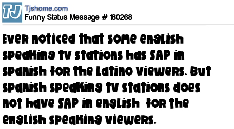 X is Ever noticed that some english speaking tv stations has SAP in spanish for the latino viewers. But spanish speaking tv stations does not have SAP in english for the english speaking viewers.