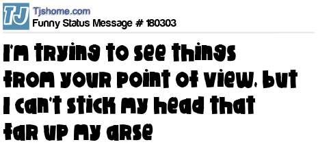 - # 53023 I'm trying to see things from your point of view, but I can't stick my head that far up my ass