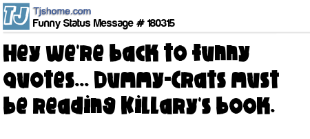 X says hey we're back to funny quotes... Dummy-Crats must be reading Killary's book.