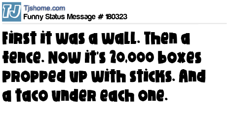 X is First it was a wall. Then a fence. Now it's 20,000 boxes propped up with sticks. And a taco under each one.