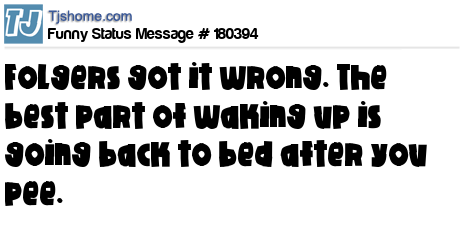X says Folgers got it wrong. The best part of waking up is going back to bed after you pee.