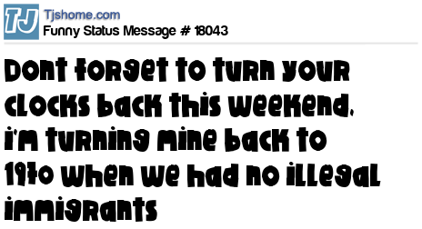 X dont forget to turn your clocks back this weekend, i'm turning mine back to 1970 when we had no illegal immigrants