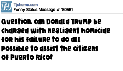 X is Question, can Donald Trump be charged with negligent homicide for his failure to do all possible to assist the citizens of Puerto Rico?