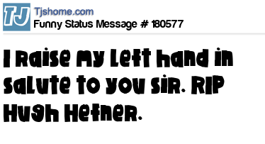 X says I raise my left hand in salute to you sir. RIP Hugh Hefner.