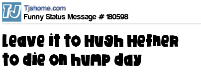 - # 180585 How fitting is it Hugh Hefner died on hump day