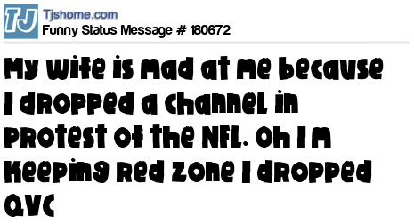 X My wife is mad at me because I dropped a channel in protest of the NFL. Oh I’m keeping red zone I dropped QVC