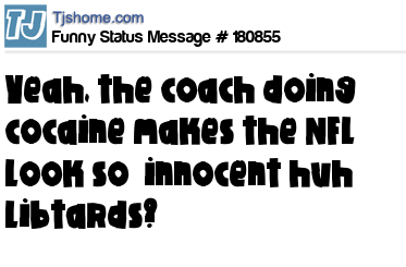 X says Yeah, the coach doing cocaine makes the NFL look so innocent huh libtards?
