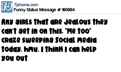 X says Any girls that are jealous they can't get in on this, "Me too" craze sweeping Social media today, hmu. I think I can help you out