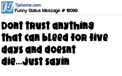 X  dont trust anything that can bleed for five days and doesnt die...just sayin