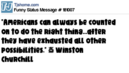 X says "Americans can always be counted on to do the right thing...after they have exhausted all other possibilities." ~ Winston Churchill