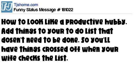 X is How to look like a productive hubby. Add things to your to do list that dosen't need to be done. So you'll have things crossed off when your wife checks the list.
