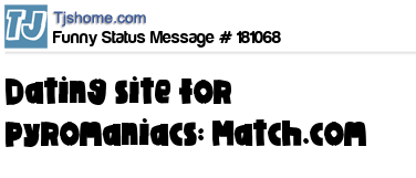 - # 62377 starting up a dating website exclusively for pyromaniacs. I shall call it "Mymatchbook".