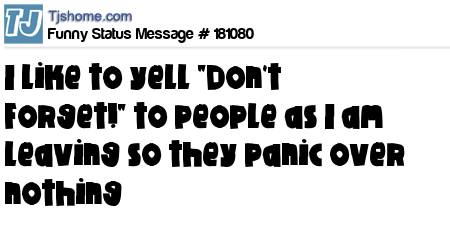 X says I like to yell "Don't Forget!" to people as I am leaving so they panic over nothing