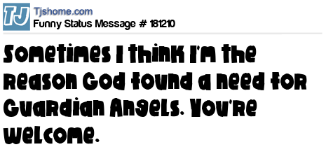 X says Sometimes I think I'm the reason God found a need for Guardian Angels. You're welcome.
