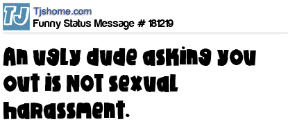 - # 181983 Many women don't know this, but an ugly guy asking you out ISN'T considered sexual harassment. Just saying...