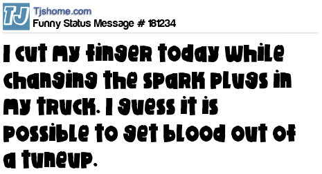 X says I cut my finger today while changing the spark plugs in my truck. I guess it is possible to get blood out of a tuneup.