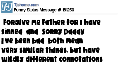 X “Forgive me Father for I have sinned” and “Sorry Daddy I’ve been bad” both mean very similar things, but have wildly different connotations