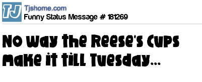 X is No way the Reese's Cups make it till Tuesday...