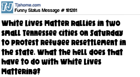 X is White Lives Matter rallies in two small Tennessee cities on Saturday to protest refugee resettlement in the state. What the hell does that have to do with White Lives Mattering?
