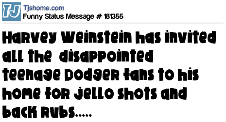 X says Harvey Weinstein has invited all the disappointed teenage Dodger fans to his home for jello shots and back rubs.....