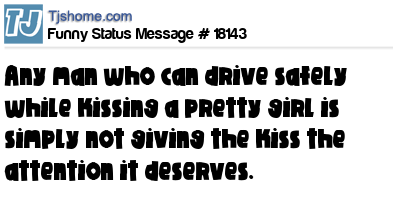 X says Any man who can drive safely while kissing a pretty girl is simply not giving the kiss the attention it deserves.
