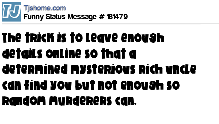 X says The trick is to leave enough details online so that a determined mysterious rich uncle can find you but not enough so random murderers can.