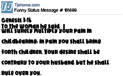 To the woman he said, “I will surely multiply your pain in childbearing; in pain you shall bring forth children. Your desire shall be contrary to your husband, but he shall rule over you.”