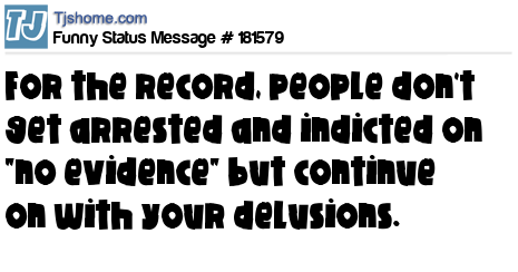X is For the record, people don't get arrested and indicted on "no evidence" but continue on with your delusions.