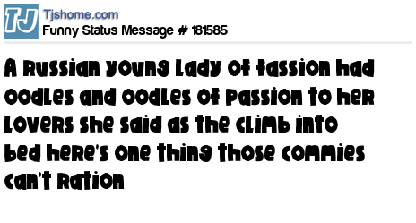 Mick, It's a limerick, a humorous verse that rhymes. At one time old russia had a lot of things that were ration. But sex was one the things they couldn't ration.