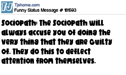 X says Sociopath: The Sociopath will always accuse you of doing the very thing that they are Guilty of. They do this to deflect attention from themselves.