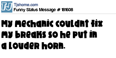 X says My mechanic couldnt fix my breaks so he put in a louder horn.