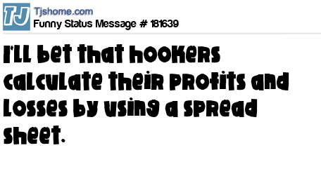X says I'll bet that hookers calculate their profits and losses by using a spread sheet.
