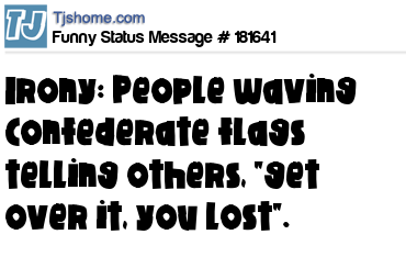 X is Irony: People waving Confederate flags telling others, "get over it, you lost".