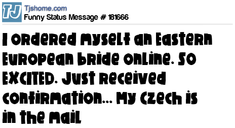 - # 151845 I ordered myself an Eastern European bride online. SO EXCITED. Just received confirmation… My Czech is in the mail!