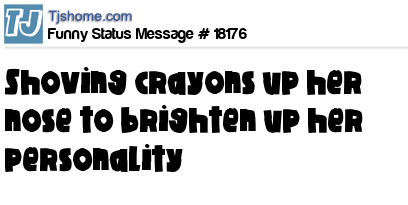 - # 161735 Why do people always make jokes insinuating that people who use crayons are crazy? I like my crayons! Especially the blue one. It makes my poo purple