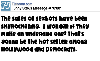 X says The sales of sexbots have been skyrocketing. I wonder if they make an underage one? That's gonna be the hot seller among Hollywood and Democrats.