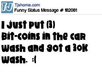 X says I just put (3) Bit-coins in the car wash and got a 30K wash. :(