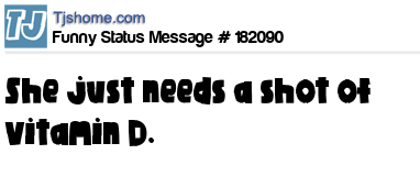 - # 167165 My neighbor, Jen, gave me a vitamin. Turns out it was a vitamin for women. I've been getting dressed for the past 2 hours and still can't find the right pair of shoes to match my pants.