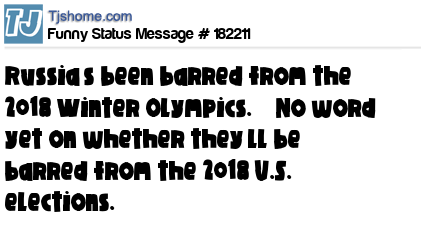 X says Russia’s been barred from the 2018 Winter Olympics. No word yet on whether they’ll be barred from the 2018 U.S. elections.