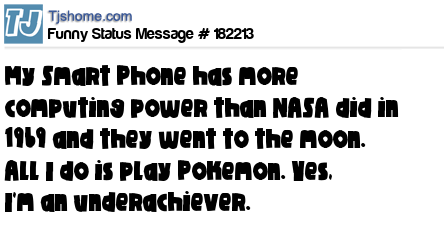 X says My Smart Phone has more computing power than NASA did in 1969 and they went to the moon. All I do is play Pokemon. Yes, I'm an underachiever.
